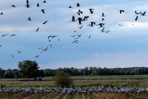 Im März und Oktober rasten hier in der Umgebung bis zu 50.000 Kraniche.